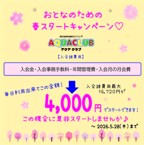 アクアクラブでは、春のスタートを応援する特別キャンペーンを実施しています。