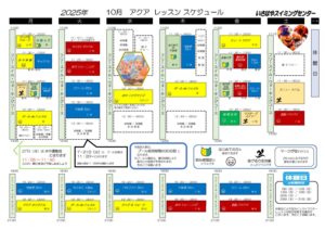 プールの中では、陸上で運動するよりも口の中が潤っていて喉が渇いたという実感が少ないですが、水分補給は必要です。 水中運動や泳ぐことにより、水分は失われていきます。 レッスンの間にこまめに水を飲みましょう! また水分補給を […]